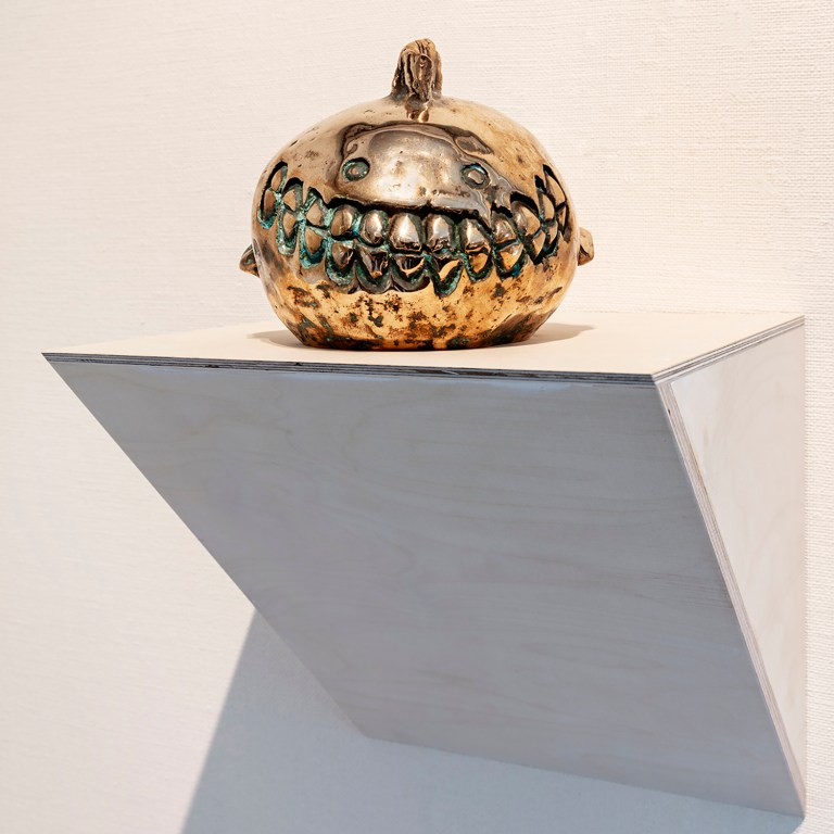 Sakari Kannosto, Hymiö/Smiley 2024 polished bronze, patina 30 x15 x 20cm