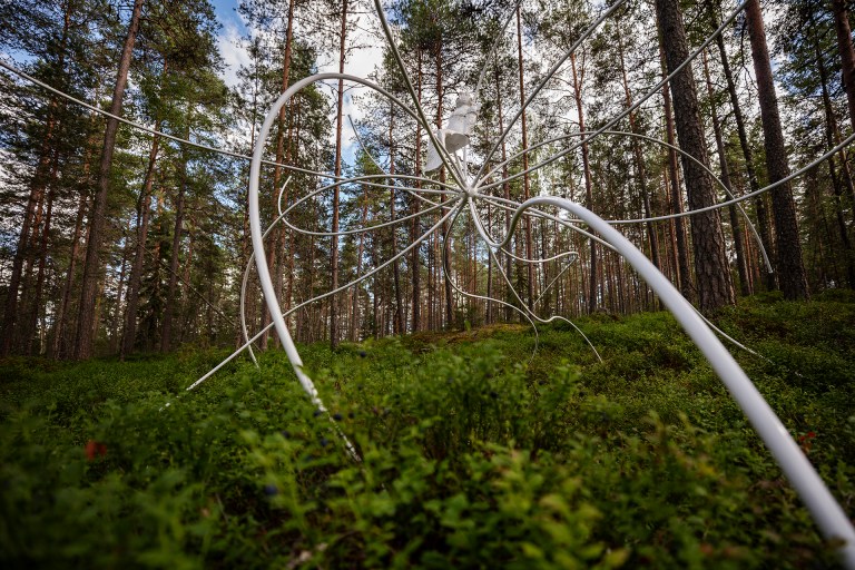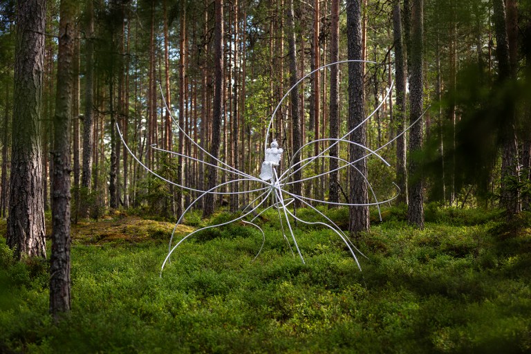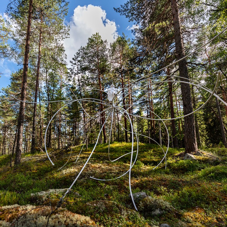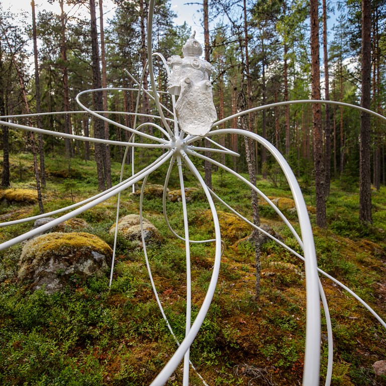 Sakari Kannosto Nomad I 2024, glazed ceramic, painted steel, 5 x5x 5m
